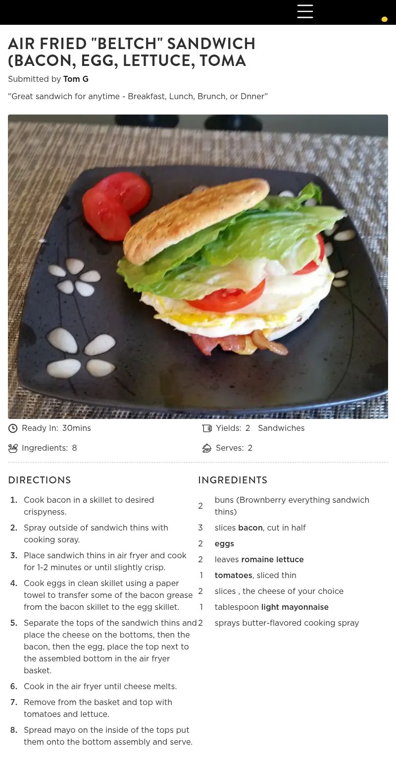 Air Fried "BELTCH" Sandwich (Bacon, Egg, Lettuce, Toma