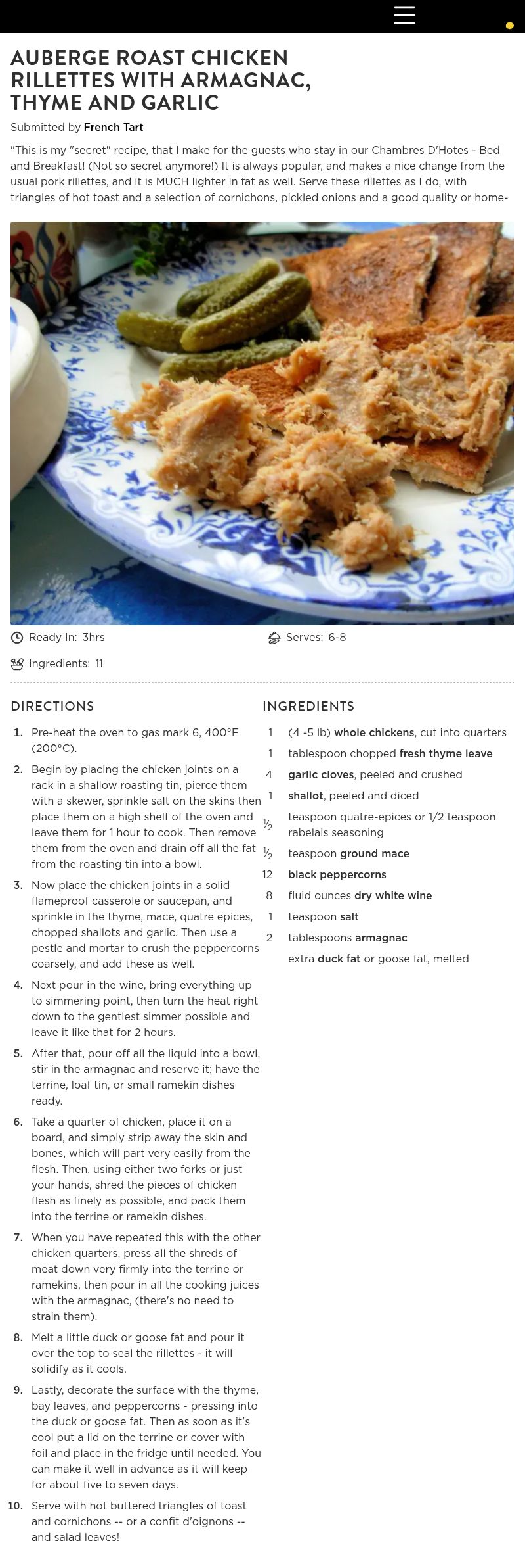 Auberge Roast Chicken Rillettes With Armagnac, Thyme and Garlic