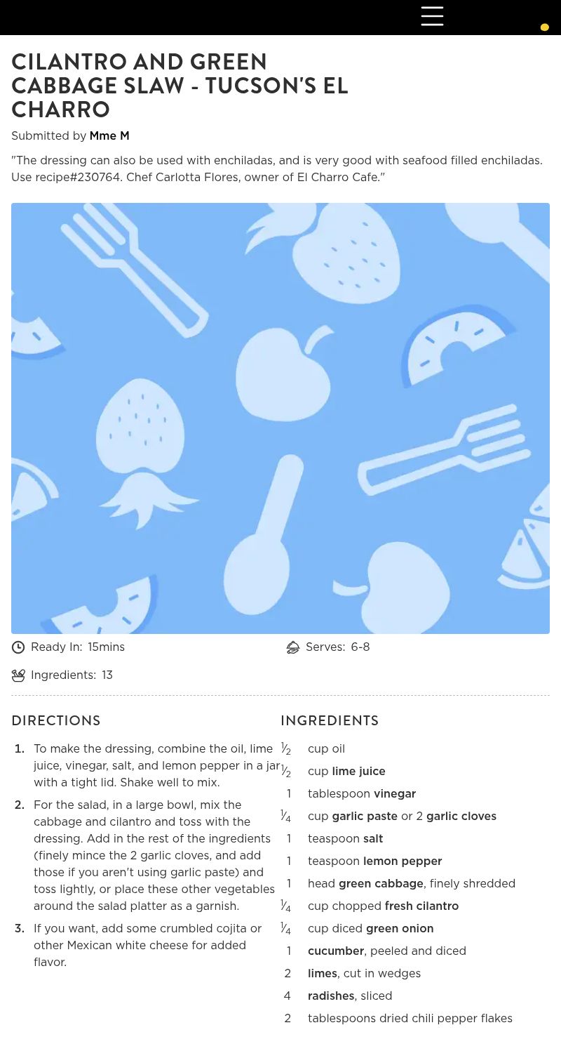 Cilantro and Green Cabbage Slaw - Tucson's El Charro