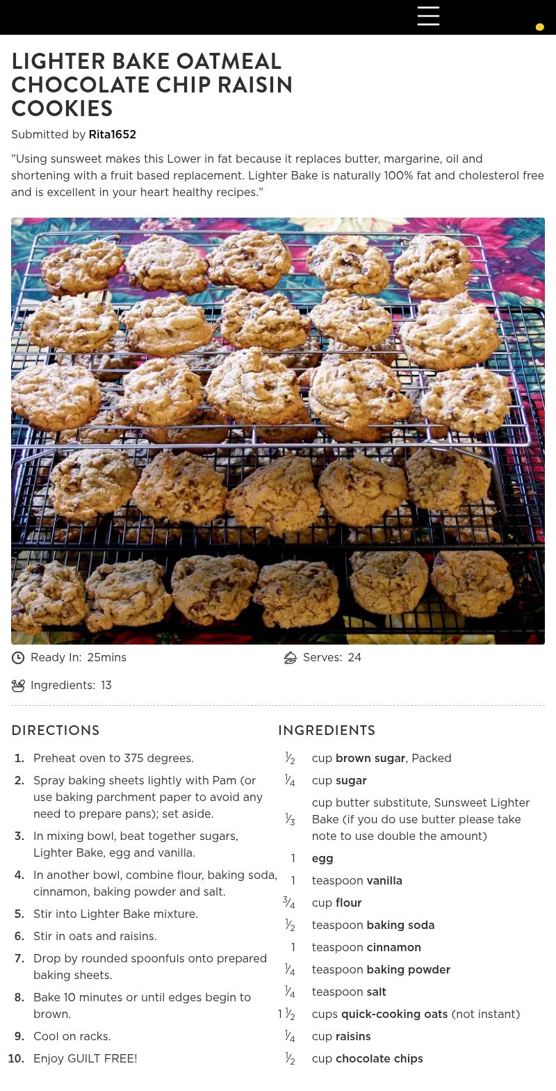 - 1⁄3 cup butter substitute, Sunsweet Lighter Bake (if you do use butter please take note to use double the amount)