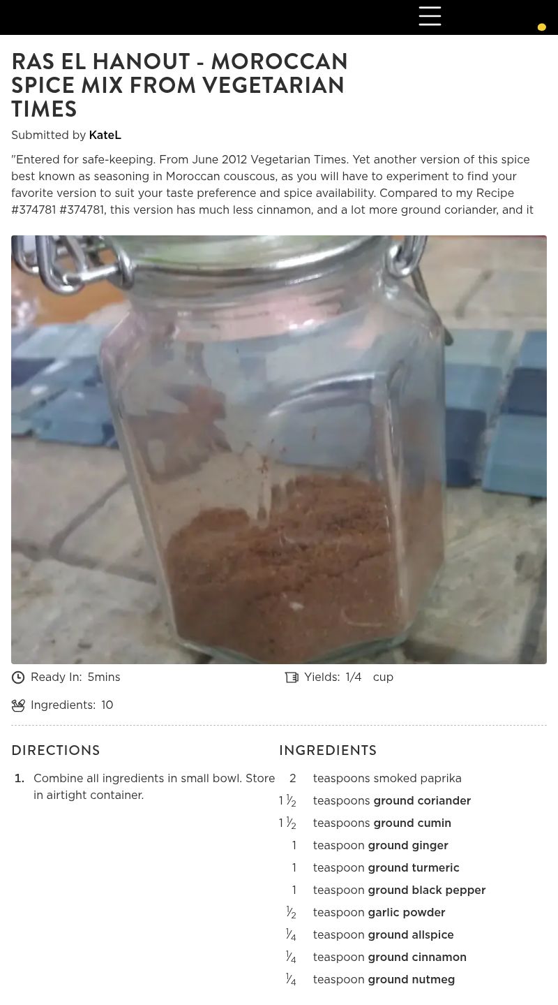Ras El Hanout - Moroccan Spice Mix from Vegetarian Times