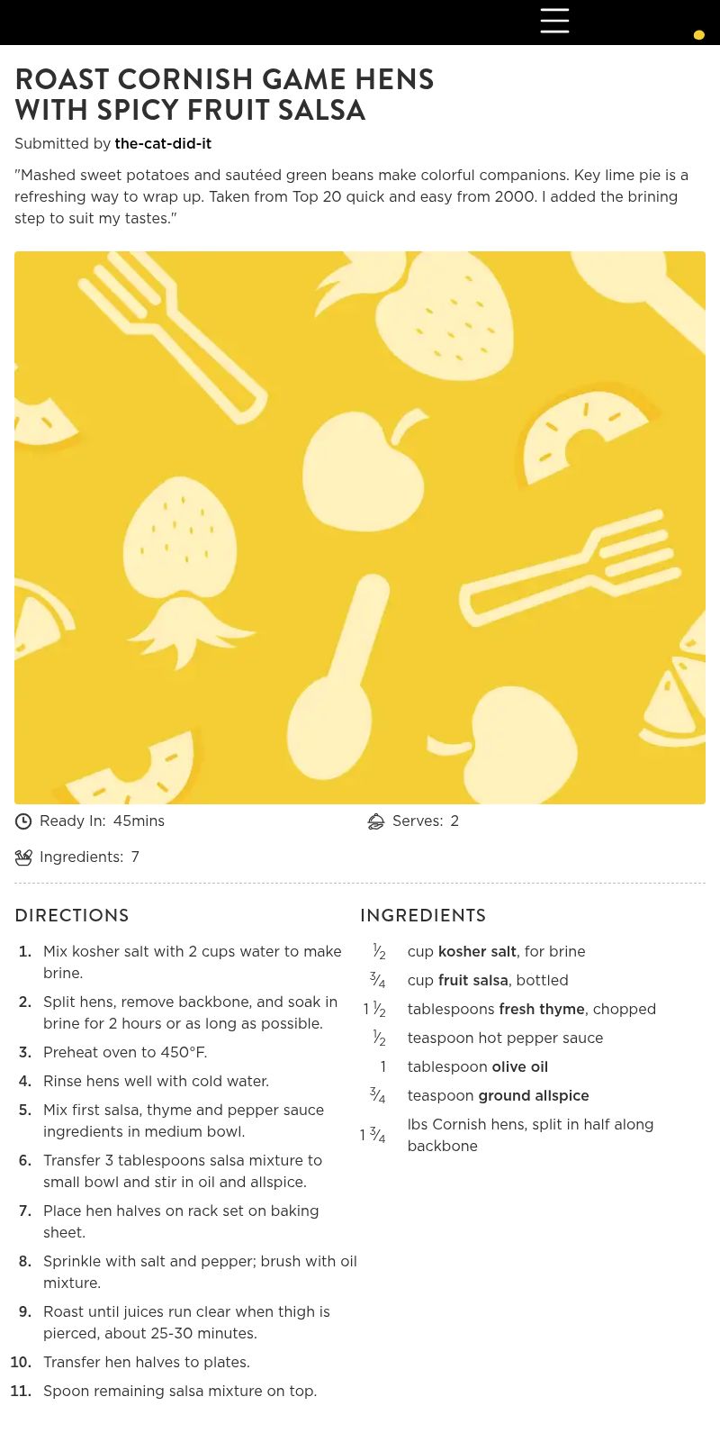 Roast Cornish Game Hens With Spicy Fruit Salsa