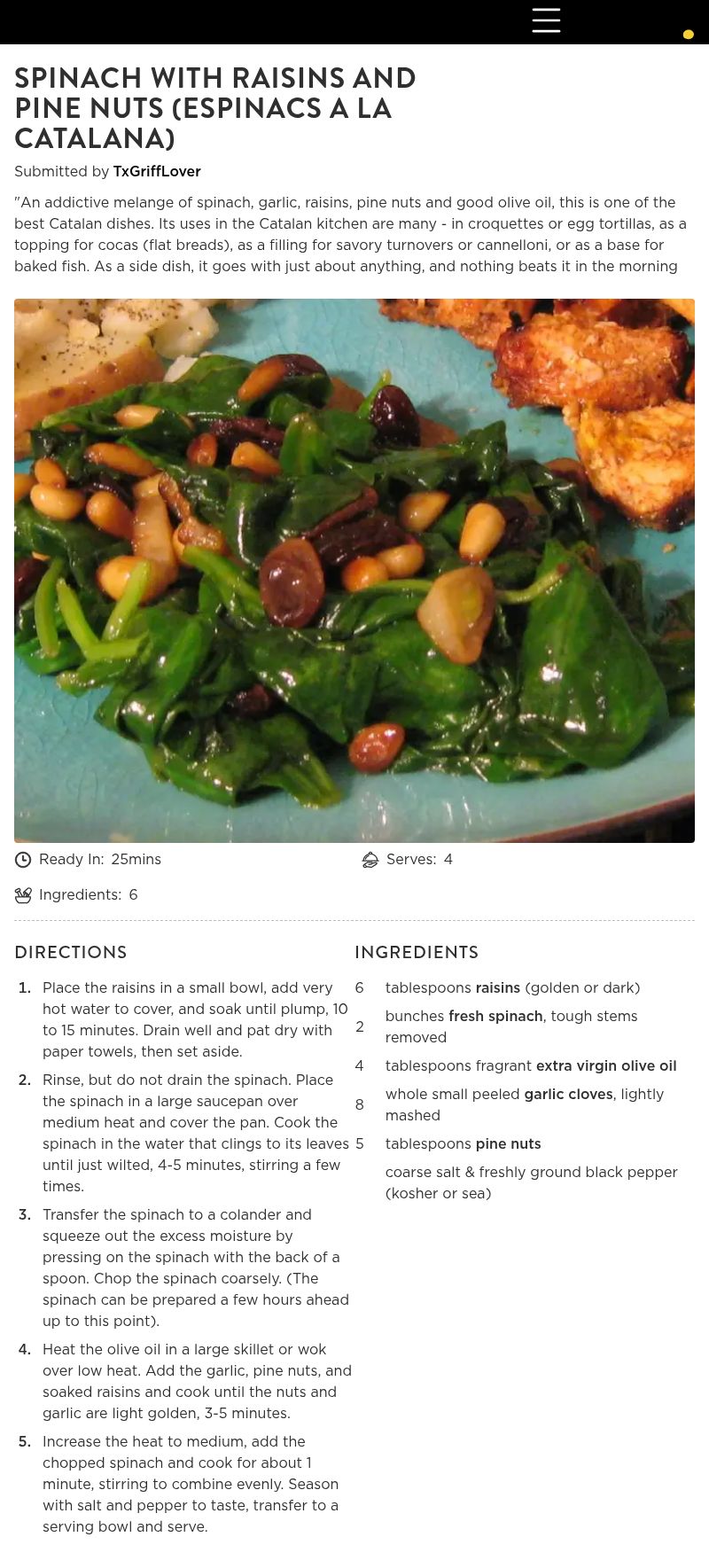 Spinach With Raisins and Pine Nuts (Espinacs a La Catalana)